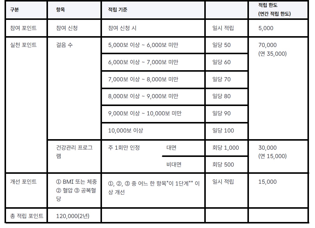 건강생활실천지원금제 포인트 적립기준및 적립금액