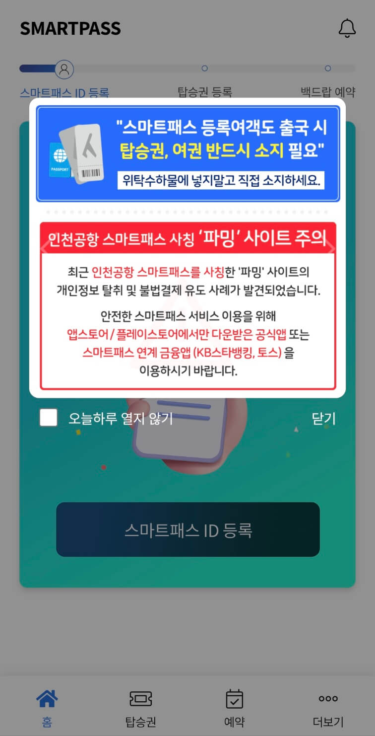 스마트패스를 이용하려면 사전 등록이 필요합니다. 등록 과정은 다음과 같습니다.