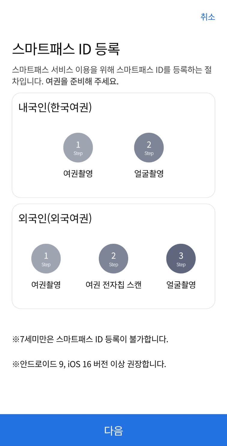 - 스마트패스 서비스는 전자여권 소지자만 이용 가능합니다.