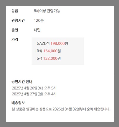 ✔ 티켓가격: GAZE석 198,000원 / R석 154,000원 / S석 132,000원 (VAT 포함)